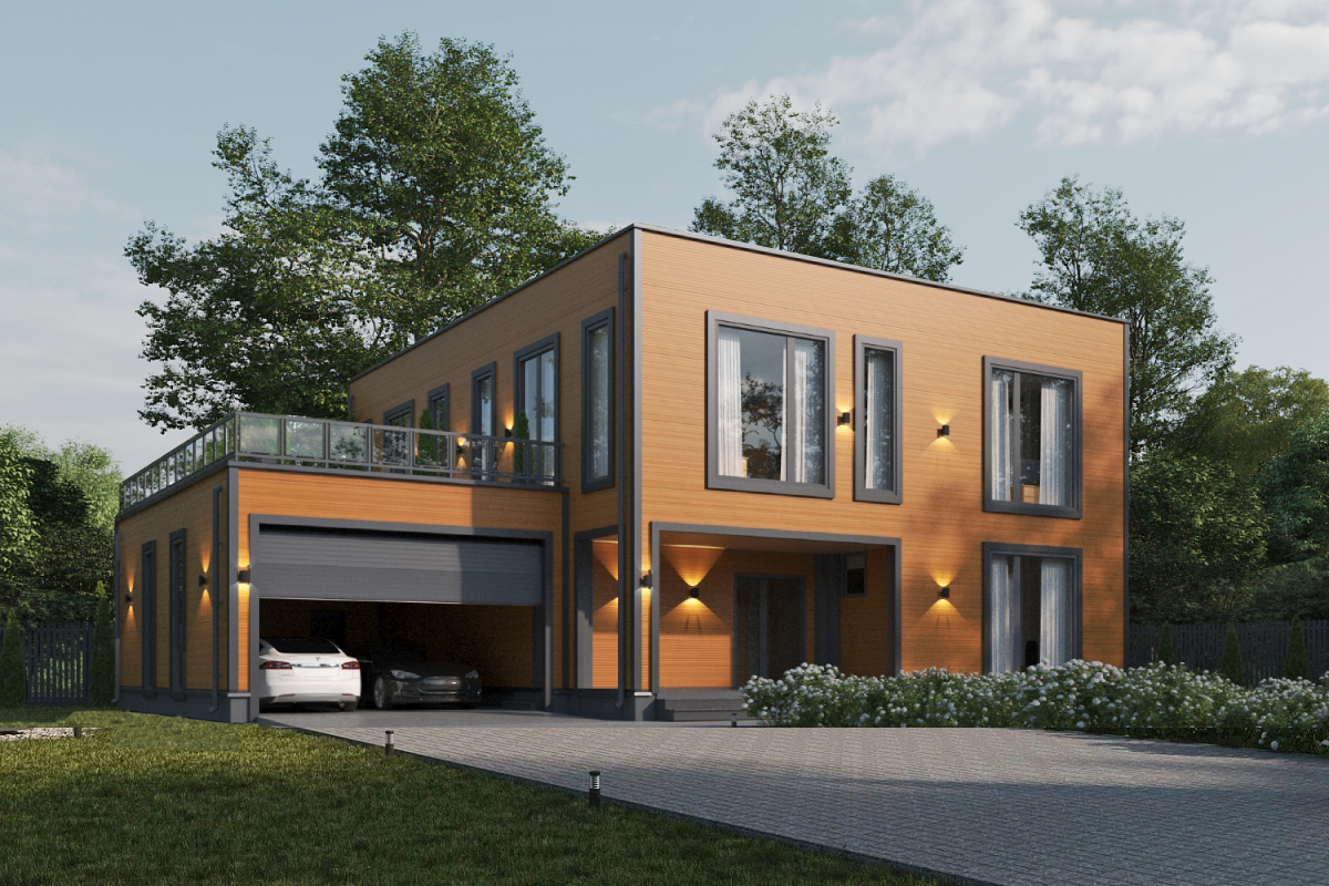 Ключевым отличием серии EFFECT являются: высокие потолки, большие окна, пристроенный гараж, балкон и терасы.