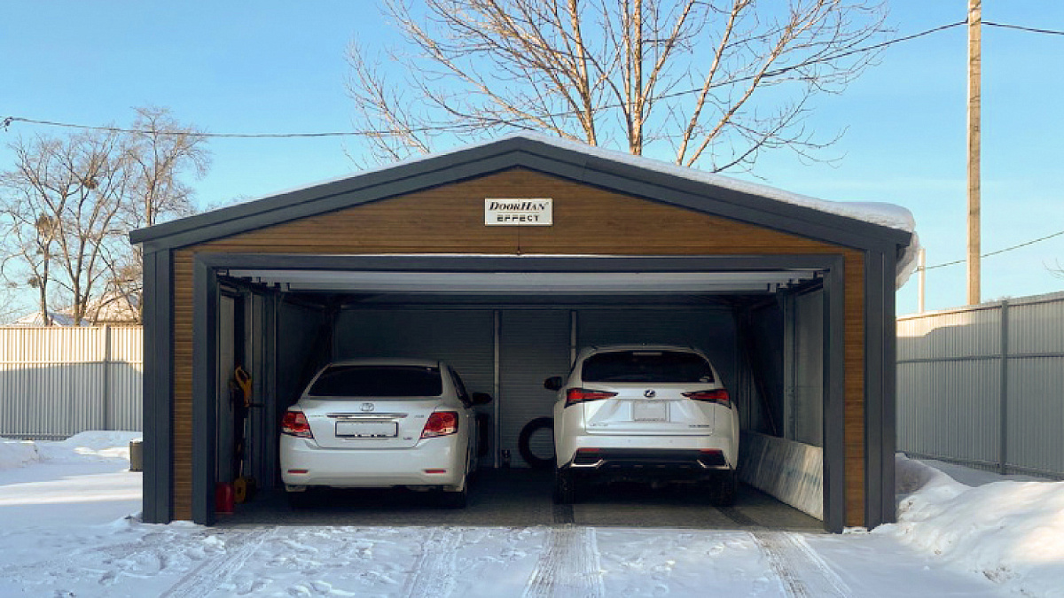 Вместительный утепленный гараж на два машиноместа. Хорошо подойдет для хранения как легковых автомобилей, так и внедорожников.